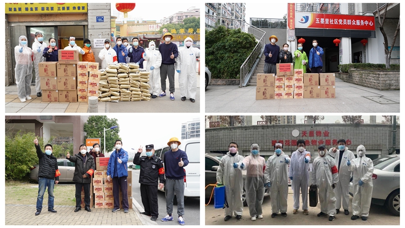 在鸚鵡社區(qū),黃鶴樓酒業(yè)與漢陽區(qū)政協(xié)委員志愿者服務(wù)隊開展聯(lián)合慰問活動,共同向戰(zhàn)斗在一線的防控人員表達(dá)親切的慰問和由衷的感謝,感謝每一位守護(hù)在街道、社區(qū)和家門口的工作人員,并送上捐贈的防護(hù)物資和慰問品,其中黃鶴樓酒業(yè)向一線防疫人員捐獻(xiàn)近2萬元的防疫物資,武漢福達(dá)集團(tuán)捐獻(xiàn)1000斤大米,漢陽區(qū)人大副主任謝春芬,區(qū)鸚鵡街副主任余倩倩代表接受捐贈。隨后,漢陽區(qū)政協(xié)委員張曉、萬暢、陳自力、李建嶺、胡寶榮、楊云華、王國才等還在鸚鵡花園社區(qū)開展義務(wù)消毒服務(wù)。