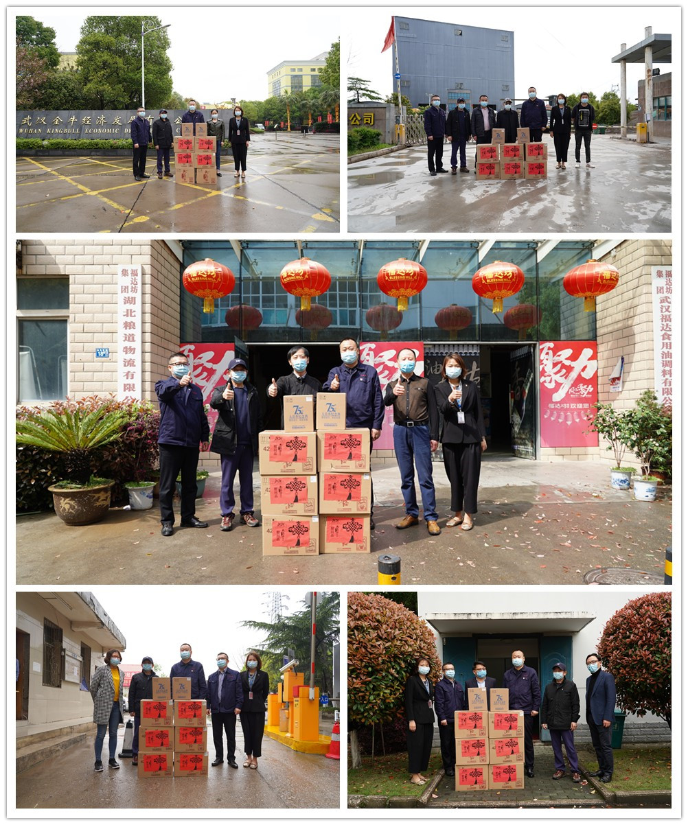 3月25日,黃鶴樓酒業(yè)黨委書記、董事長許鵬前往武漢武公服裝有限公司、武漢金牛經(jīng)濟發(fā)展有限公司、武漢天鳴集團有限公司、福達坊糧油集團(湖北)有限公司和武漢新中環(huán)保有限公司進行慰問,并代表公司捐贈近19萬元物資。漢陽企業(yè)家協(xié)會主任耿旭東、公司監(jiān)事長黃曉文陪同慰問。