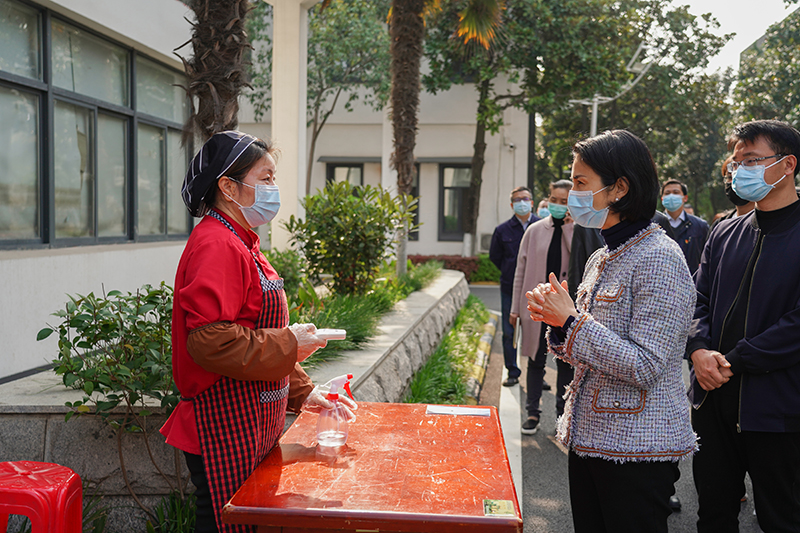 (圖為徐麗指導(dǎo)黃鶴樓酒業(yè)宿舍防疫工作)