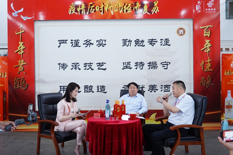 隨后,任永信、許鵬、吳瑾言在天成坊釀造車間以線上抖音直播與線下座談相結(jié)合的方式,就“疫情后時代的經(jīng)濟復蘇”為主題展開討論。許鵬表示,一直以來,黃鶴樓酒堅持從選糧源頭開始把控產(chǎn)品品質(zhì),建立糧食基地,確保產(chǎn)品質(zhì)量。后疫情時代,有危就有機,黃鶴樓酒業(yè)將以良心品質(zhì)、良心服務回饋社會、回饋消費者。任永信表示,文化關(guān)鍵在化,管理重在于理,后疫情時代,以文化人以文化心,思想要有流動性,社會要有責任心,敬天愛人,用溫度和能量促進社會發(fā)展。同時,任永信對黃鶴樓酒提出純、正、清、香的四字評價,他表示,與其等待不如乘勢而上,黃鶴樓酒業(yè)帶著感恩之心與奮進之心釀造出精品好酒,堅守傳統(tǒng)工藝,傳承楚酒文化。
