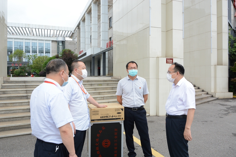 田運(yùn)雄一行為黃鶴樓酒業(yè)帶來(lái)口罩、職工文體用品等慰問物資,并詳細(xì)了解黃鶴樓酒業(yè)的復(fù)工復(fù)產(chǎn)情況,李良就黃鶴樓酒業(yè)不裁員、不減薪及公司銷售目標(biāo)不減等舉措做出具體介紹。