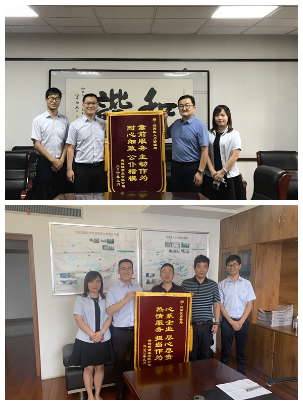 9月11日,公司人力資源中心總監(jiān)助理張佳一行分別前往漢陽區(qū)人力資源局、漢陽區(qū)房管局贈送錦旗,對兩家局機關(guān)長期以來在政策服務(wù)、問題協(xié)調(diào)等方面給予的支持表達(dá)感謝。漢陽區(qū)人力資源局就業(yè)局局長王鏑,漢陽區(qū)房管局黨組成員、副局長張偉龍及辦公室主任劉敏分別作為代表接收錦旗。