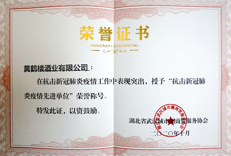 近日,湖北省武漢城市圈商貿(mào)服務(wù)協(xié)會為參與抗擊新冠肺炎疫情具有杰出貢獻的先進單位和個人進行頒獎,黃鶴樓酒業(yè)獲“抗擊新冠肺炎疫情先進單位”榮譽稱號。