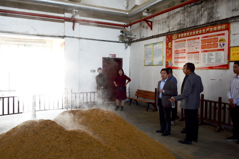 萬龍一行先后調(diào)研了黃鶴樓森林美酒小鎮(zhèn)景區(qū)商貿(mào)中心、黃鶴樓酒文化館、美酒銀行、洞釀第一坊、酒香花果山等景點。調(diào)研中,李良詳細(xì)介紹了黃鶴樓酒業(yè)(咸寧)有限公司的新建項目及陶壇林項目規(guī)劃,并就黃鶴樓酒釀造原料、工藝流程與萬龍進(jìn)行深入討論。