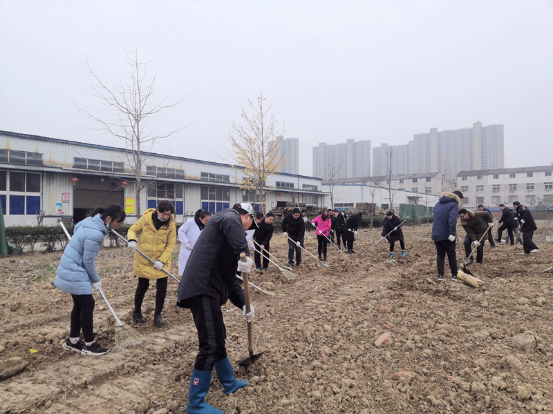 義務(wù)勞動中,黃鶴樓酒業(yè)黨委委員、隨州黨支部書記閔波平和大家一起分工合作,翻地、撒苗、培土,有條不紊。冬季天氣寒冷,大家卻汗?jié)褚律?,熱情高漲,以勞動為榮,樂在其中。