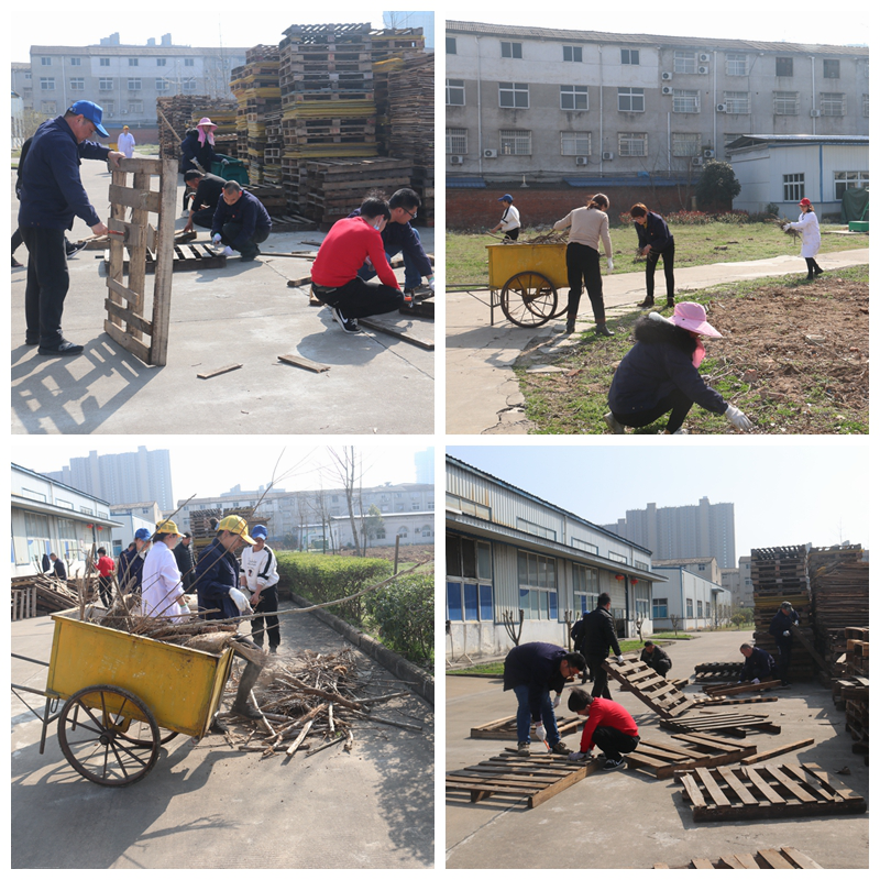 活動(dòng)過程中,公司黨委委員、隨州黨支部書記閔波平和大家一起整理廠區(qū)環(huán)境衛(wèi)生、維修破損托盤。大家分工合作、齊心合力,清理廠區(qū)樹枝、排水溝垃圾,共維修托盤70余個(gè)。
