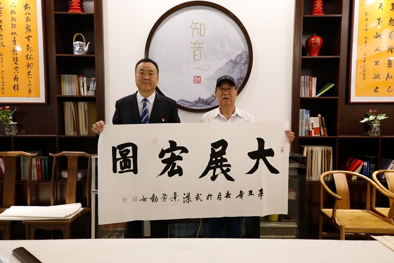 隨后,景學(xué)勤中將揮毫潑墨,贈(zèng)予黃鶴樓酒業(yè)“大展宏圖”墨寶,表達(dá)對(duì)黃鶴樓酒業(yè)的美好祝愿。