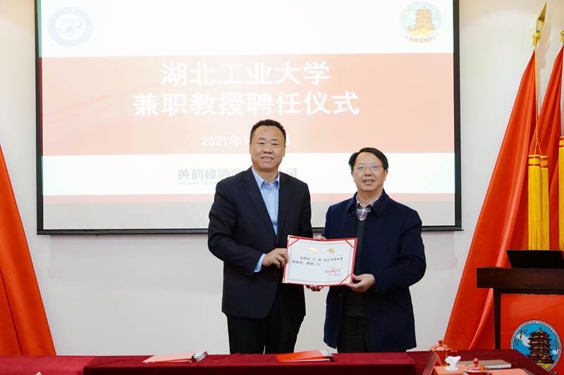 11月8日,湖北工業(yè)大學(xué)兼職教授聘任儀式暨研究生工作站簽約掛牌儀式在黃鶴樓酒業(yè)舉行。湖北工業(yè)大學(xué)黨委常委、副校長李冬生,黃鶴樓酒業(yè)黨委書記、董事長許鵬出席儀式。