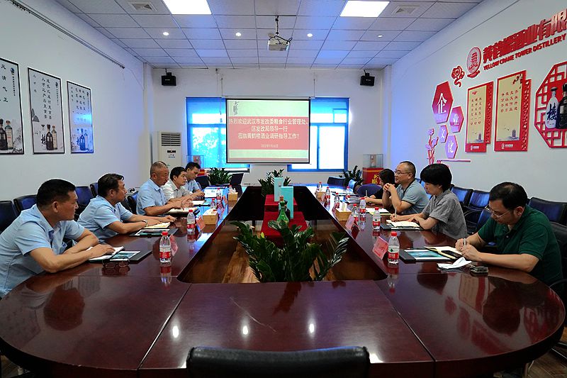 7月26日,武漢市發(fā)改委糧食行業(yè)管理處處長王必生,副處長孫慧婉、彭玫一行調(diào)研黃鶴樓酒業(yè),漢陽區(qū)發(fā)改局副局長葉方斌陪同調(diào)研,公司黨委委員、副總經(jīng)理魏國出席活動。