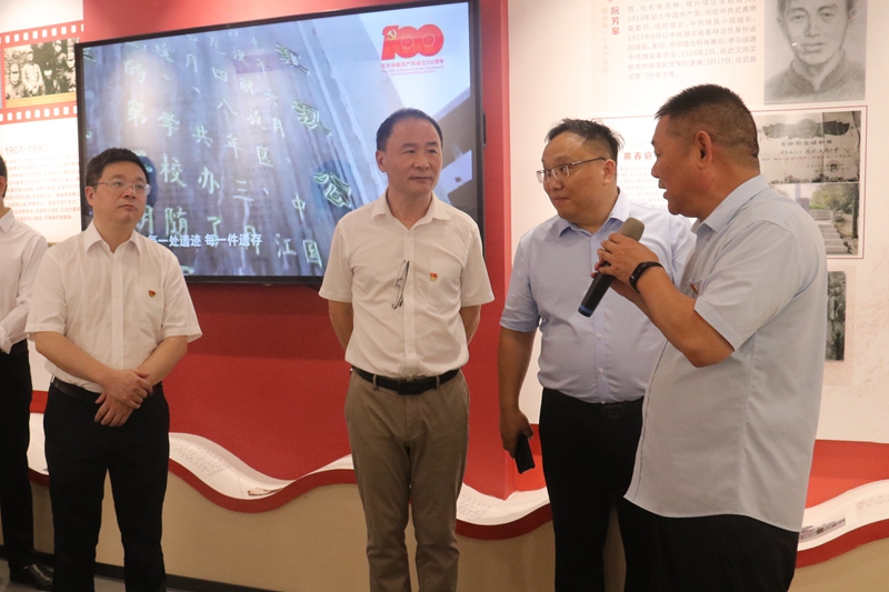 曾云峰一行先后調(diào)研了一號(hào)釀造車間、黨建文化館,實(shí)地了解了黃鶴樓酒業(yè)釀造技藝及現(xiàn)代智能化生產(chǎn)工藝。在黨建文化館,曾云峰一行重溫了入黨誓詞,傳承紅色精神,汲取信仰力量。