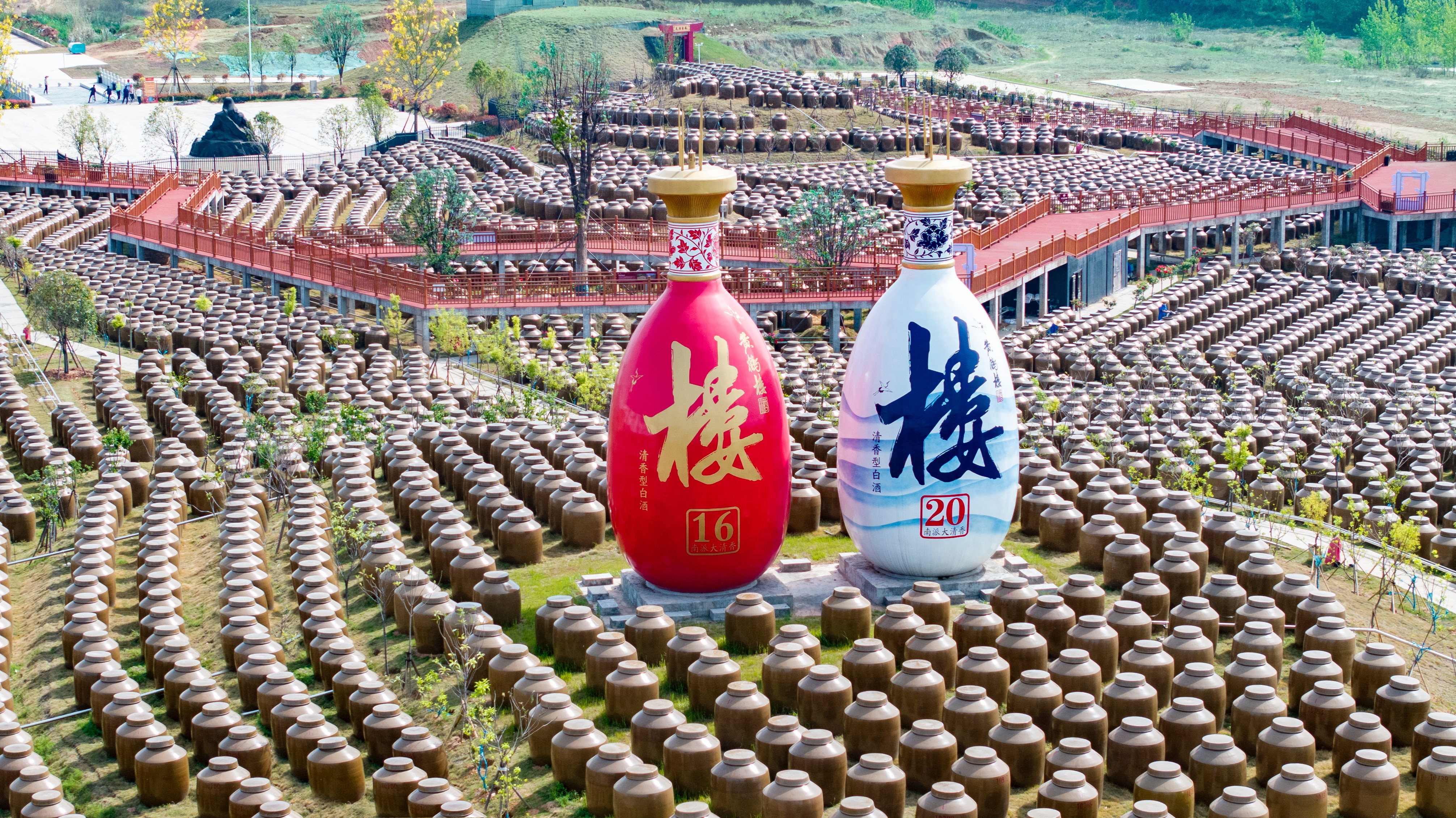 "萬(wàn)噸陶壇林"是黃鶴樓酒智能釀造園的一道獨(dú)特風(fēng)景。室外陶壇林用于儲(chǔ)存原酒。在4.1萬(wàn)平米的空地上擺放近一萬(wàn)個(gè)陶壇,每個(gè)陶壇自重600多斤,1.55米高,埋深50-70cm,陶壇口距離地面最多1米,可儲(chǔ)存1.3噸原酒。