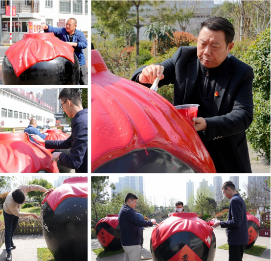 活動現(xiàn)場,行政黨支部黨員、發(fā)展對象、積極分子、團(tuán)員對小花園、主干道等區(qū)域的酒壇進(jìn)行重新上漆,大家團(tuán)結(jié)協(xié)作、共同配合,有條不紊地進(jìn)行調(diào)漆、打磨、清掃、涂刷等步驟,認(rèn)真仔細(xì)地完成了酒壇刷漆工作,美化了廠區(qū)環(huán)境。