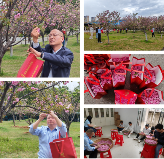 活動(dòng)開始前,技術(shù)質(zhì)量中心相關(guān)人員介紹了櫻花采摘要求。隨后,在春日高照下,大家進(jìn)入櫻花園,專心致志挑選、采摘櫻花,左腕提袋,右手摘花,輕摘輕放,去梗去葉,熱情滿滿。在20余名黨員的共同努力下,共采摘櫻花20余斤。