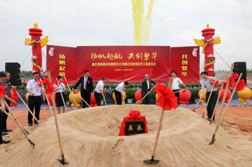 在奠基典禮現(xiàn)場,隨著梁金輝宣布項目奠基,全體參會嘉賓共同為隨州分廠搬遷改造項目奠基培土。