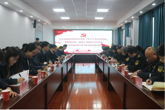 1月7日,隨州市市場(chǎng)監(jiān)督管理局機(jī)關(guān)黨支部聯(lián)合黃鶴樓酒業(yè)(隨州)有限公司黨支部開展“雙聯(lián)共建”工作暨1月支部主題黨日活動(dòng)。隨州市市場(chǎng)監(jiān)督管理局黨組成員、副局長(zhǎng)劉前濤,黃鶴樓酒業(yè)隨州黨支部書記、隨州子公司總經(jīng)理、人力資源中心總監(jiān)張佳,釀造管理中心總監(jiān)助理蘇祥民參加活動(dòng)。