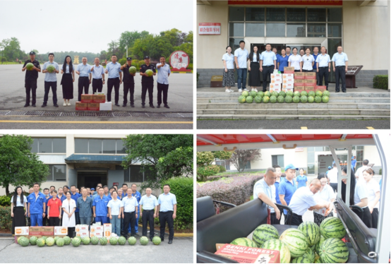 謝毅一行先后前往釀造車間、包裝車間、倉(cāng)儲(chǔ)物流等地,為一線員工送去清涼解暑的西瓜、飲料及防暑藥品等物資,并詳細(xì)詢問(wèn)了高溫下員工工作情況、作息安排以及防暑措施落實(shí)情況。