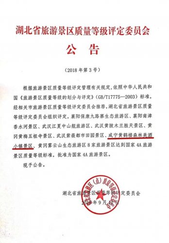 9月12日,湖北省旅游景區(qū)質(zhì)量等級(jí)評(píng)定委員會(huì)發(fā)布公告,黃鶴樓森林美酒小鎮(zhèn)正式獲批為國(guó)家AAAA級(jí)旅游景區(qū)。