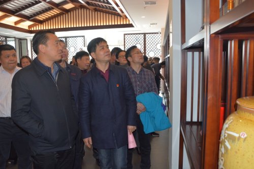 程良勝一行在講解員的帶領下先后參觀了景區(qū)的商貿(mào)中心、黃鶴樓酒文化館、美酒銀行等景點,在黃鶴樓酒文化館,程良勝對黃鶴樓酒洞釀洞藏的生產(chǎn)儲存方式和黃鶴樓酒速降30度高科技過濾保障技術表示濃厚興趣并給予充分肯定。