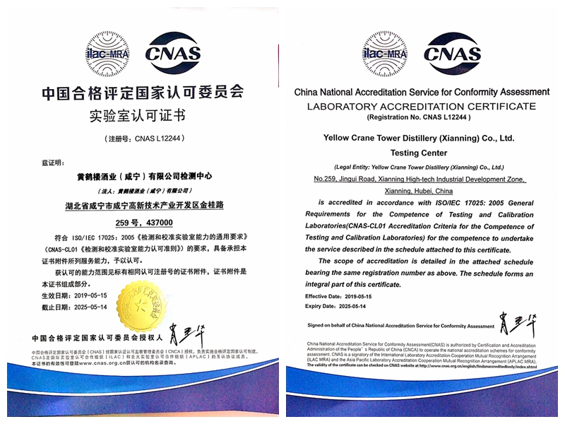 近日,黃鶴樓酒業(yè)咸寧檢測(cè)中心通過CNAS(中國合格評(píng)定國家認(rèn)可委員會(huì))認(rèn)可,獲得由中國合格評(píng)定國家認(rèn)可委員會(huì)(CNAS)頒發(fā)的國家實(shí)驗(yàn)室認(rèn)可證書。