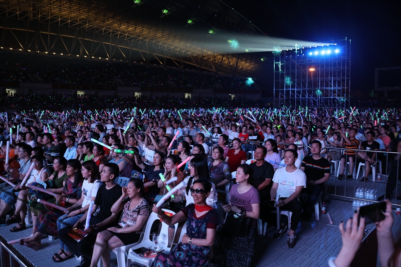 演唱會(huì)的現(xiàn)場表演火爆,觀眾熱情高漲。觀眾們揮舞著熒光棒與臺(tái)上的歌手們共同合唱,互動(dòng)頻繁。比起現(xiàn)場觀眾的熱情,炎炎夏日已經(jīng)不足道,用音樂解暑,黃鶴樓酒為黃岡市民送上了清涼一夜。