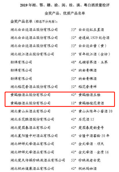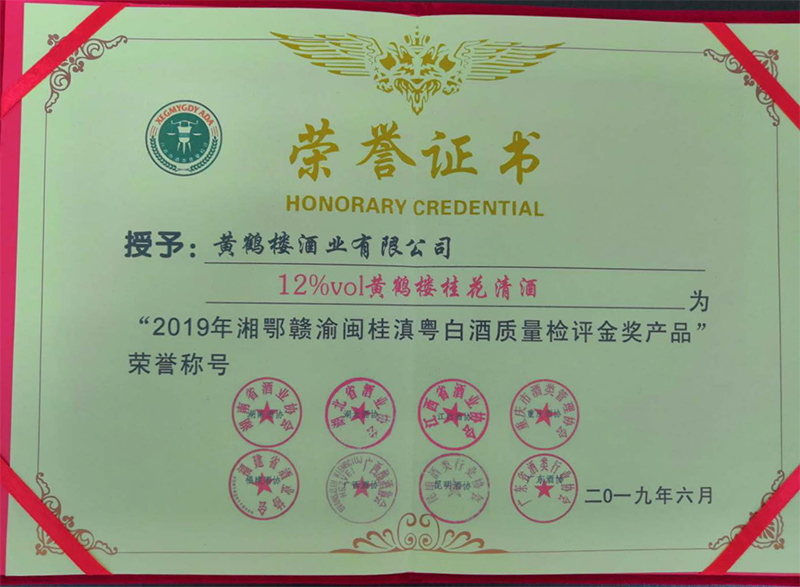 近日,在第十一屆酒類質量檢評會上,黃鶴樓酒業(yè)“42%vol黃鶴樓五樓”榮獲“2019年湘鄂贛渝閩桂滇粵白酒質量檢評信得過金樽獎”稱號,“12%vol黃鶴樓桂花清酒”榮獲“2019年湘鄂贛渝閩桂滇粵白酒質量檢評金獎”稱號。
