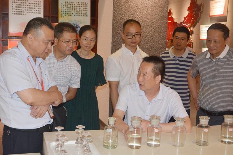 7月16日,湖北省發(fā)改委環(huán)資處處長守同發(fā)一行參觀調(diào)研黃鶴樓森林美酒小鎮(zhèn),咸寧市發(fā)改委主任張善猛、高新區(qū)科經(jīng)局局長劉瓊陪同調(diào)研。黃鶴樓酒業(yè)酒體設計中心總工程師李久洪接待來訪。