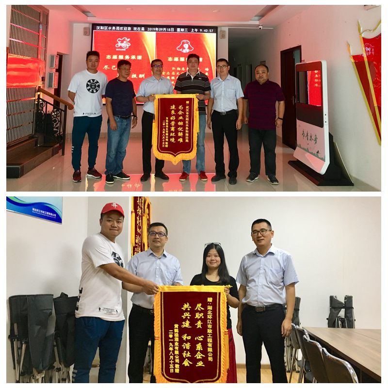 隨后,黃曉文一行前往湖北環(huán)江市政工程有限公司贈與錦旗,以表對黃鶴樓酒業(yè)武漢廠區(qū)雨污分流工程建設(shè)的感謝之情。