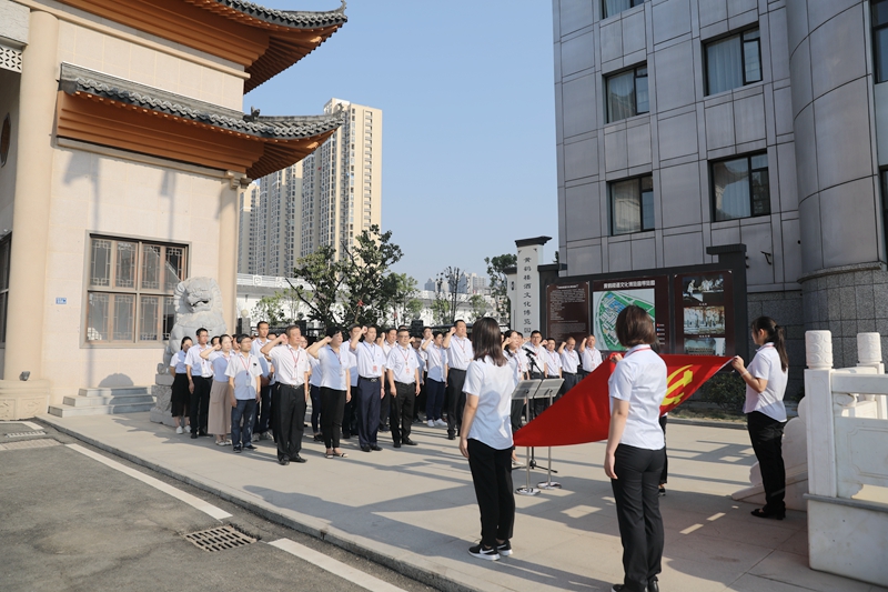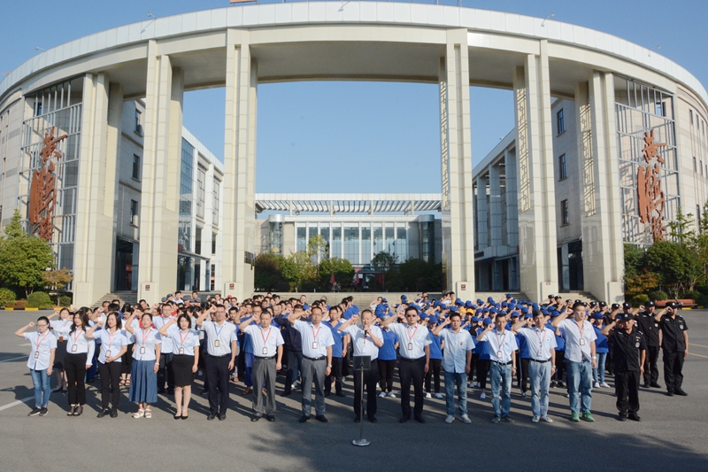 8時(shí)30分,升國旗、奏國歌,全體觀禮人士面向旗桿肅立,五星紅旗伴著朝陽徐徐升起,在晨風(fēng)中飄揚(yáng)。隨后,在莊嚴(yán)的中共黨旗前,麻玉俠帶領(lǐng)各位員工重溫入黨誓詞,黃曉文帶領(lǐng)各位員工宣讀黃鶴樓酒業(yè)誓詞,勉勵(lì)各位員工為實(shí)現(xiàn)中華民族偉大復(fù)興的中國夢、黃鶴樓酒名酒復(fù)興的企業(yè)夢不斷奮進(jìn)!