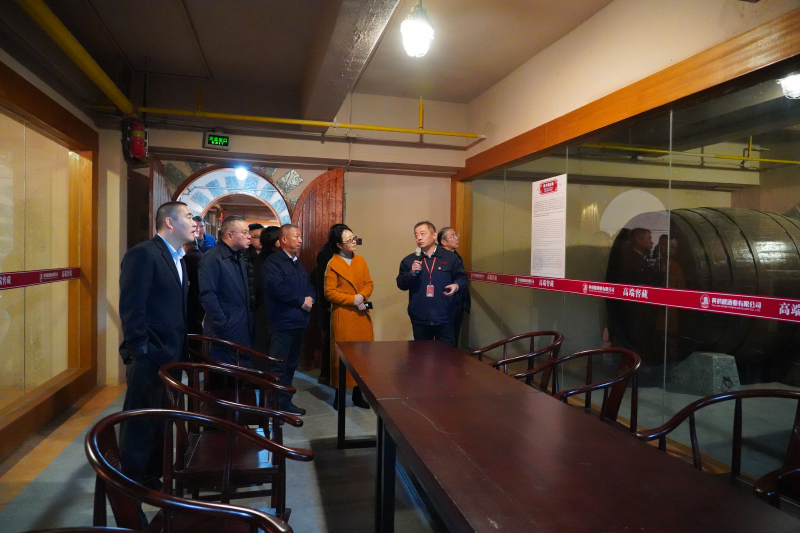 盧堅勝一行參觀了天成坊釀造車間、名人酒窖和黨建文化館,并品鑒了黃鶴樓大清香原酒。品鑒過后,盧堅勝對酒的品質(zhì)大加贊賞,表示“在橡木桶中儲存后的酒,更醇、更柔、更香,好喝。”